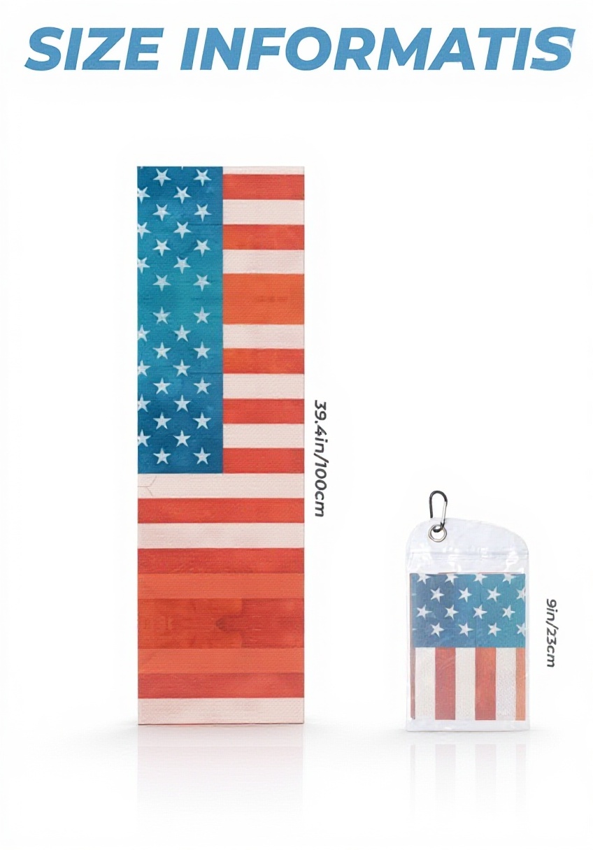 L’asciugamano YYHWHJDE è realizzato in poliestere traspirante e iperevaporativo, progettato per offrire un effetto rinfrescante immediato quando bagnato. La stampa vintage della bandiera americana aggiunge un tocco di stile, mentre la custodia impermeabile con moschettone ne facilita il trasporto. Senza prodotti chimici, si attiva semplicemente immergendolo in acqua, garantendo freschezza durante l’uso.