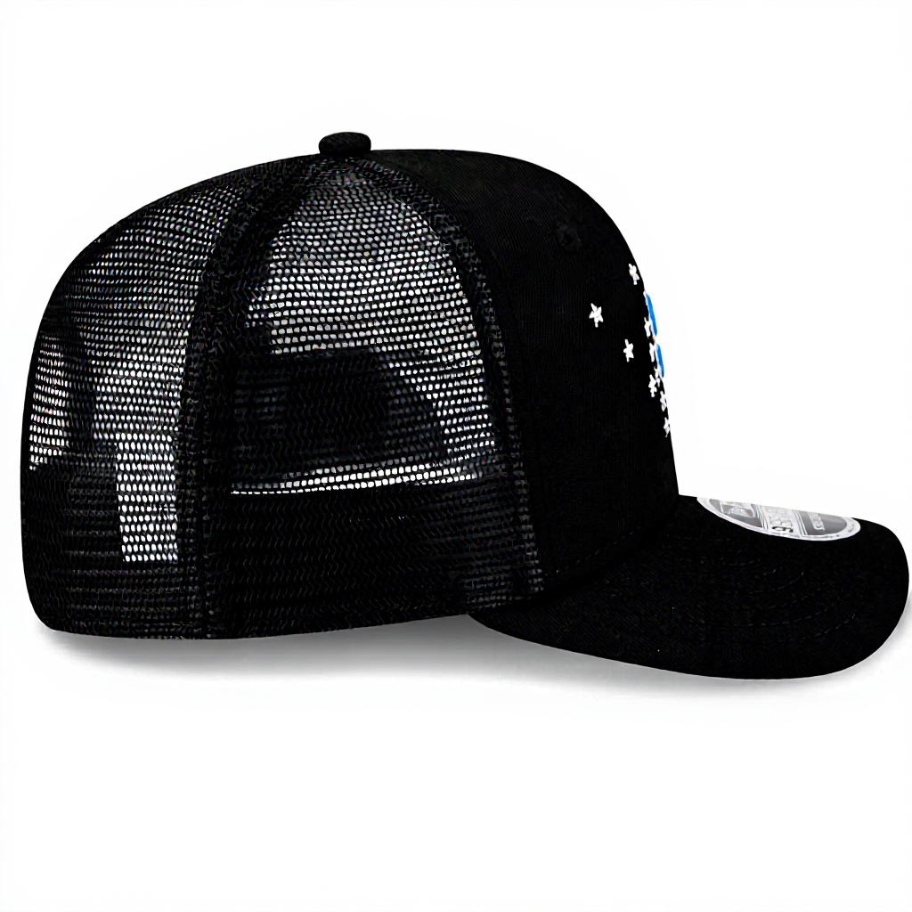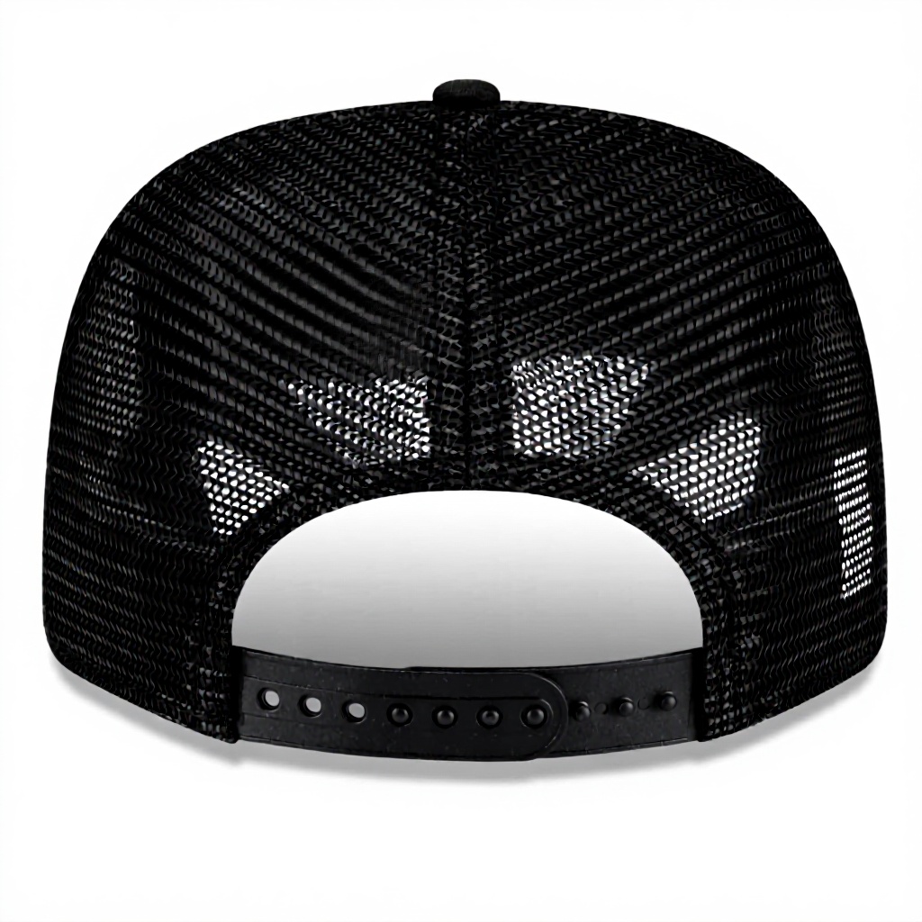 Il berretto è realizzato con materiali di alta qualità, tra cui pannelli frontali in tessuto resistente e un retro in mesh per la traspirazione, garantendo comfort e longevità.