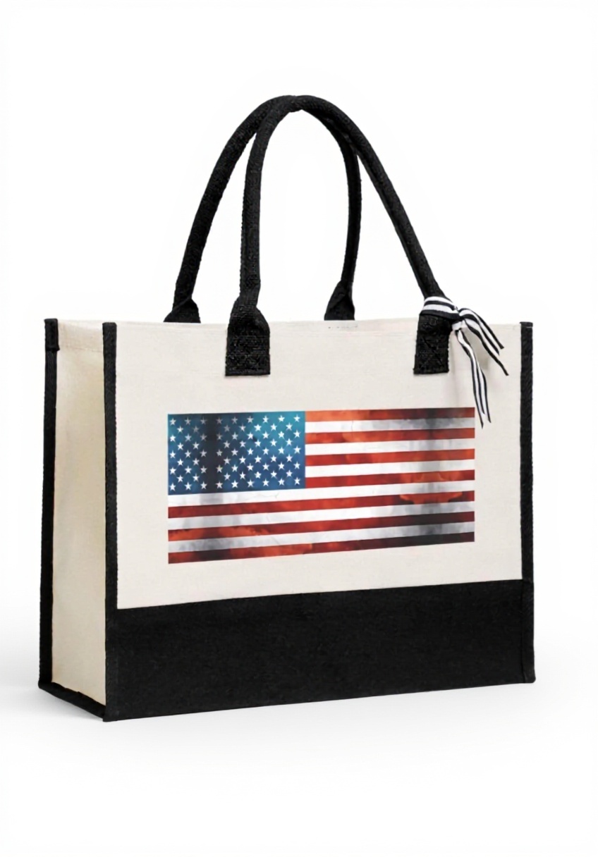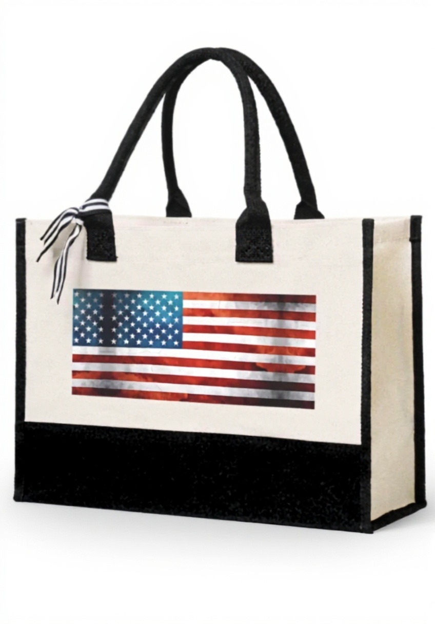 Borsa per la Spesa WANLON in Tela con Bandiera Americana Vintage