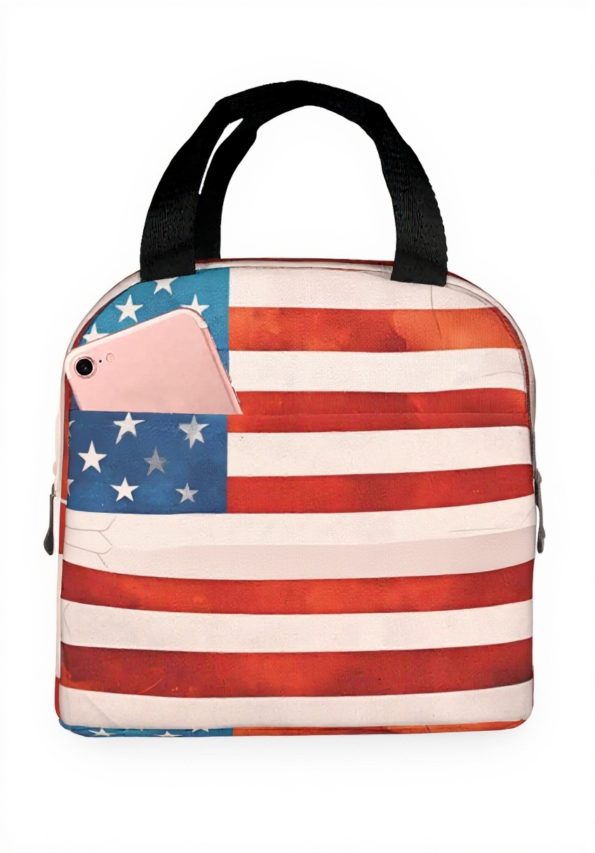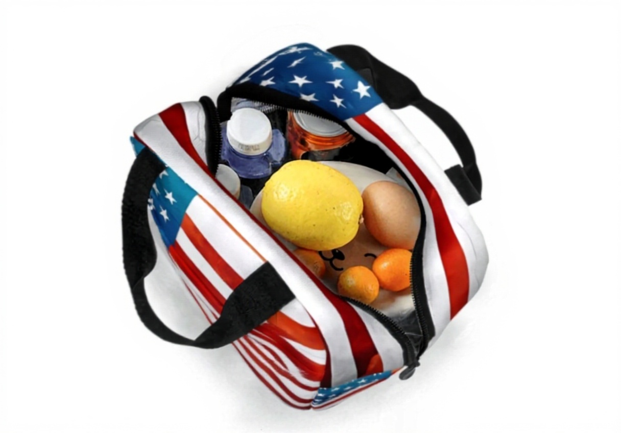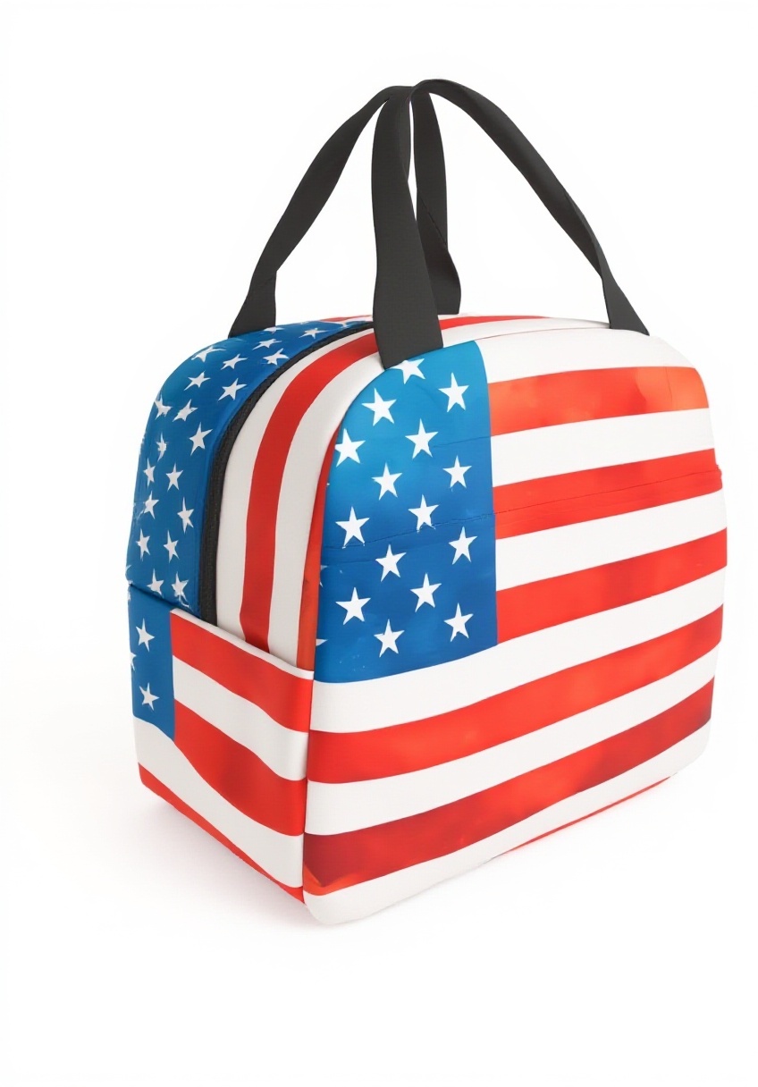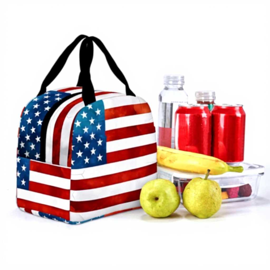 Questa borsa termica e fredda BUNAL si distingue per il design vintage con bandiera americana, che unisce estetica e funzionalità. Realizzata in poliestere di alta qualità, è impermeabile, resistente agli strappi e dotata di uno spesso strato di schiuma isolante per mantenere il cibo alla temperatura desiderata. Il design semi-aperto facilita il caricamento e l’accesso agli alimenti, mentre la tasca frontale offre spazio extra per oggetti personali.