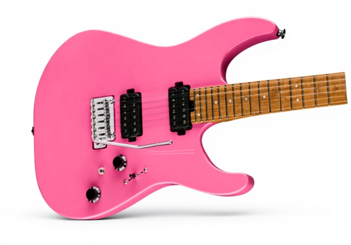 La Charvel Pro-Mod DK24 HH combina un design moderno con materiali di alta qualità. Dotata di pick-up humbucker Seymour Duncan, ponente Floyd Rose e manico in acero con tastiera in ebano, garantisce suoni potenti e precisi. La finitura Bubblegum Pink aggiunge un tocco di stile unico.