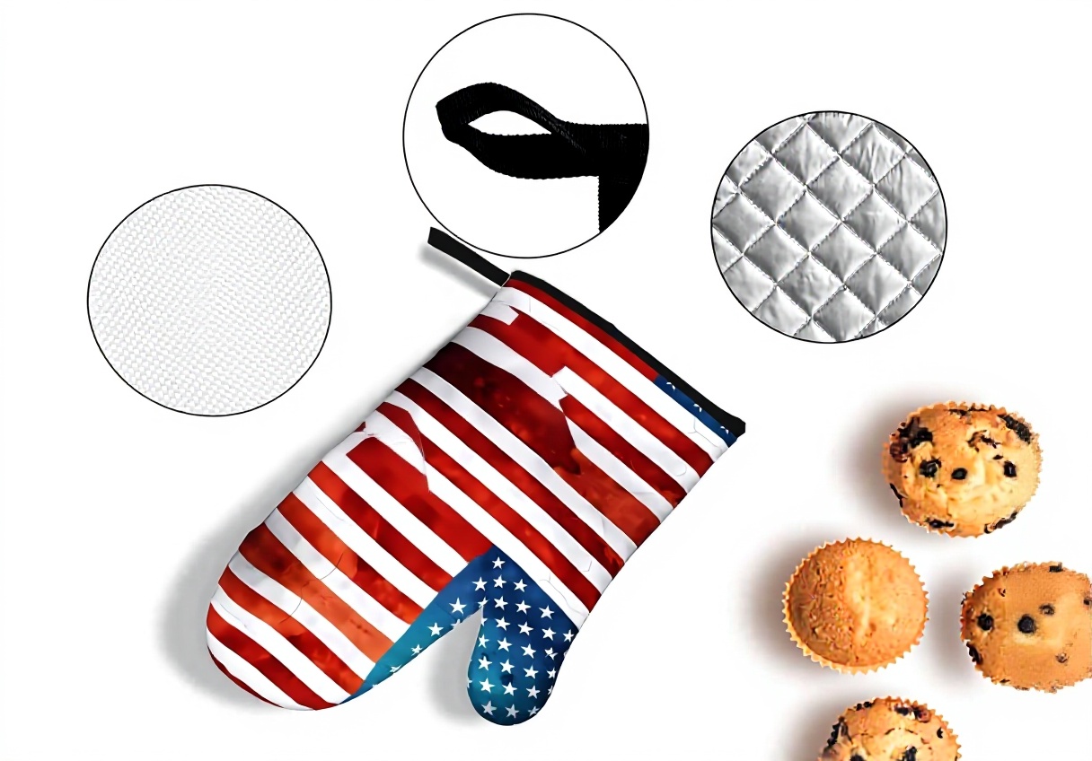 Questo set include guanti da forno e presine con una stampa vintage della bandiera americana, realizzati in tessuto poliestere impermeabile che assicura un isolamento spesso e durevole. I materiali di alta qualità offrono protezione efficace contro scottature e ustioni, con uno strato interno ed esterno progettato per resistere al calore elevato, mantenendo comodità e presa salda durante l’uso.