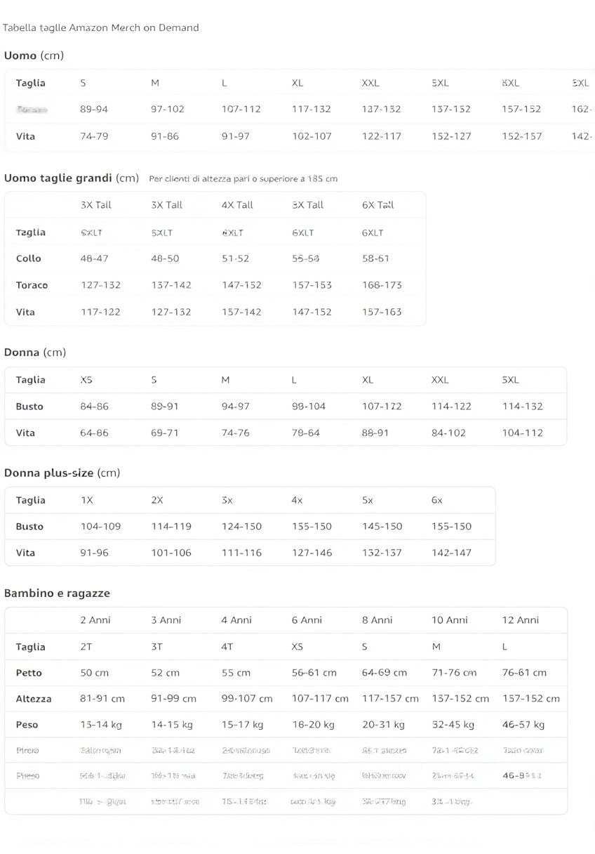 Quali sono le dimensioni della maglietta?