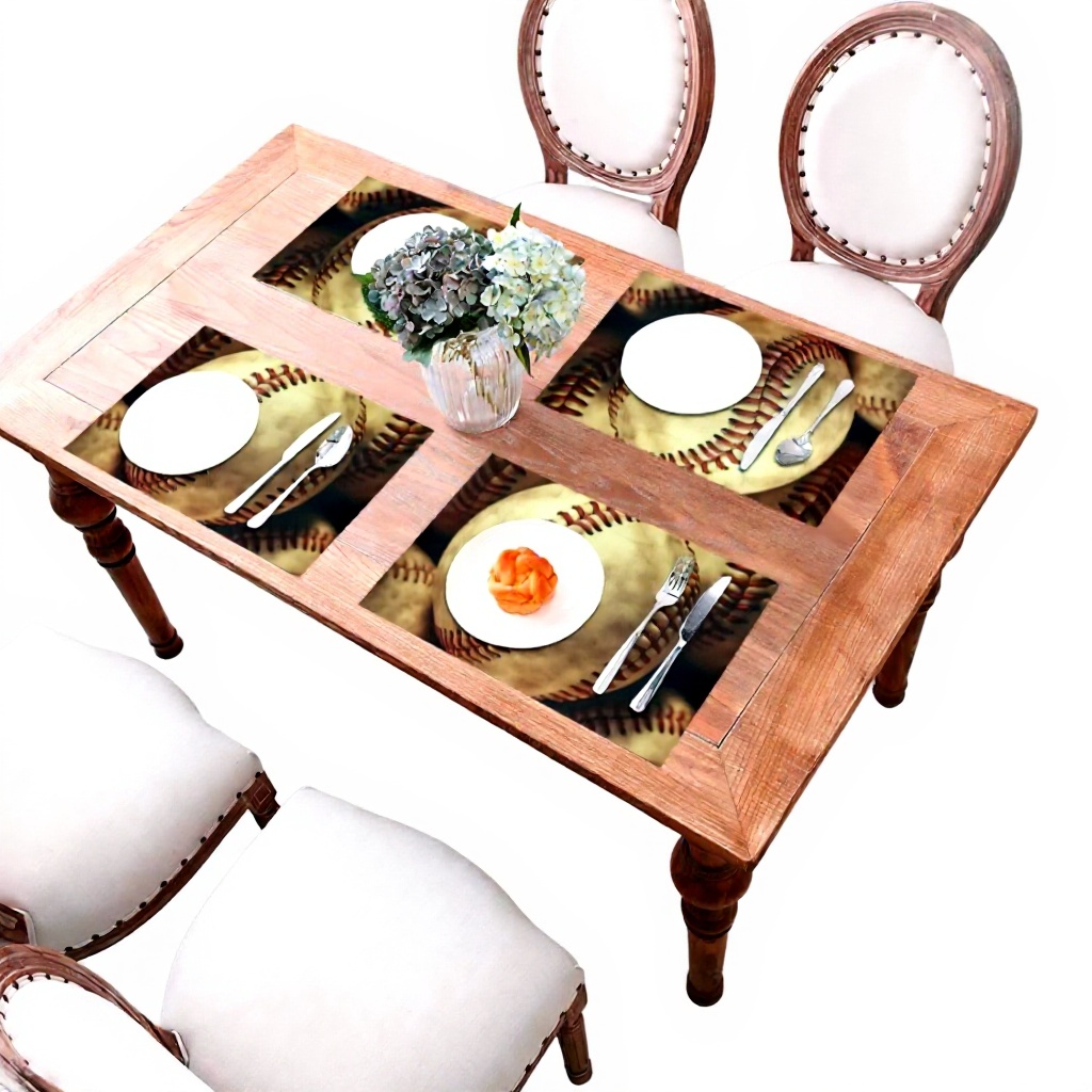 Le tovagliette LZQPOEAS sono realizzate in PVC di alta qualità con una stampa vintage americana che richiama il baseball. Grazie al materiale rayon, offrono durabilità e facilità di pulizia, con bordi tagliati a caldo per una finitura precisa e resistente.