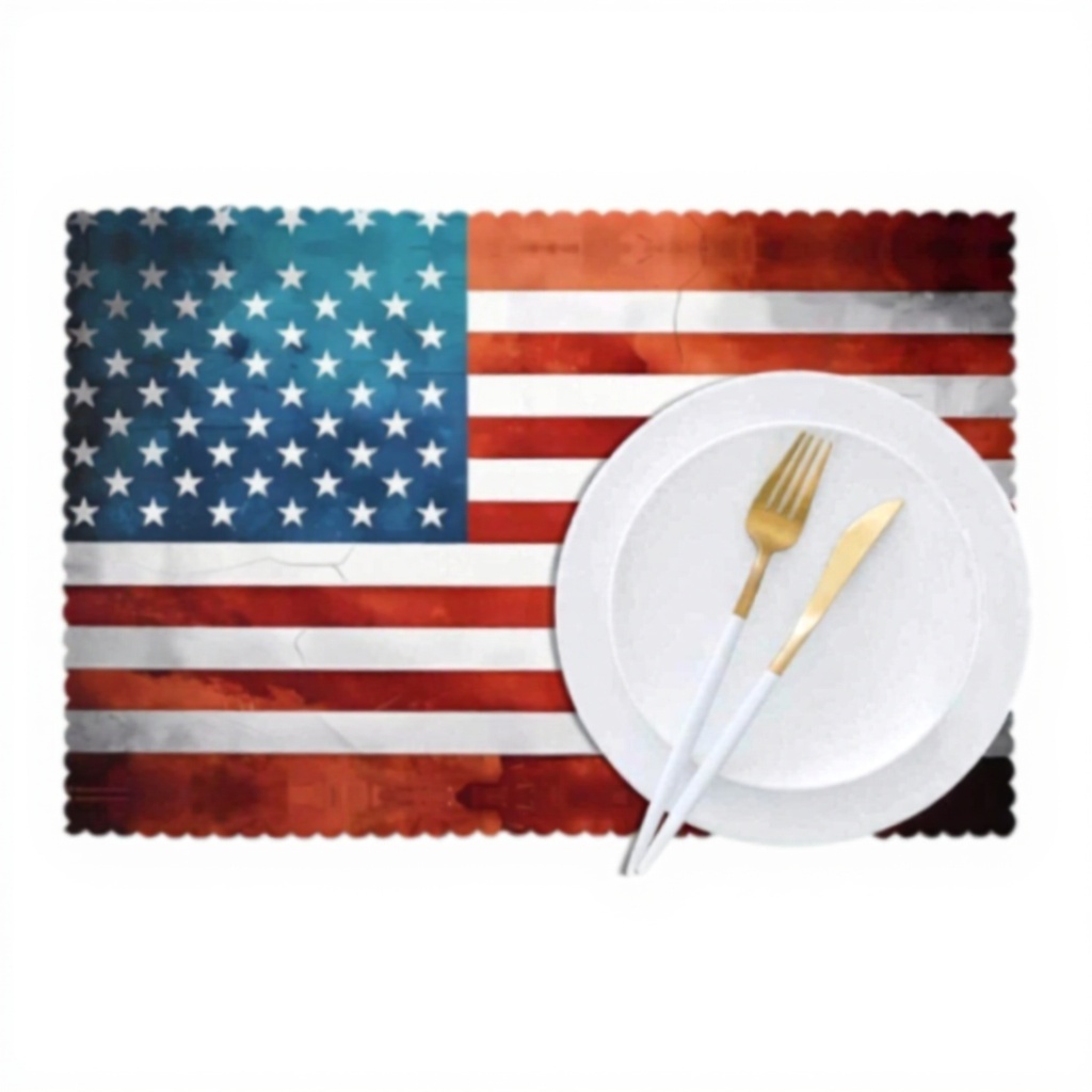 These table mats feature a classic vintage American flag design, crafted from 100% spun polyester for a soft, durable, and wrinkle-resistant finish. The high-quality material ensures long-lasting use while protecting your table from spills, stains, and scratches, making them both functional and stylish for any dining setting.